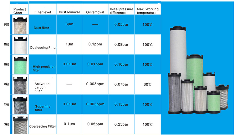 ค่อยๆ รวมตัวเป็นละอองน้ำขนาดใหญ่ขึ้นเมื่ออยู่ใกล้วัสดุกรอง สารเหล่านี้จะถูกดูดซับด้วยแรงไฟฟ้าสถิตของใยแก้วจากนั้นน้ำมันและน้ำจะถูกรวบรวมที่ด้านล่างของตัวกรองและระบายออกทางท่อระบายน้ำอัตโนมัติเพื่อรักษาสิ่งแวดล้อม จะต้องรวบรวมน้ำมันและน้ำที่ปล่อยออกมาในภาชนะพิเศษ